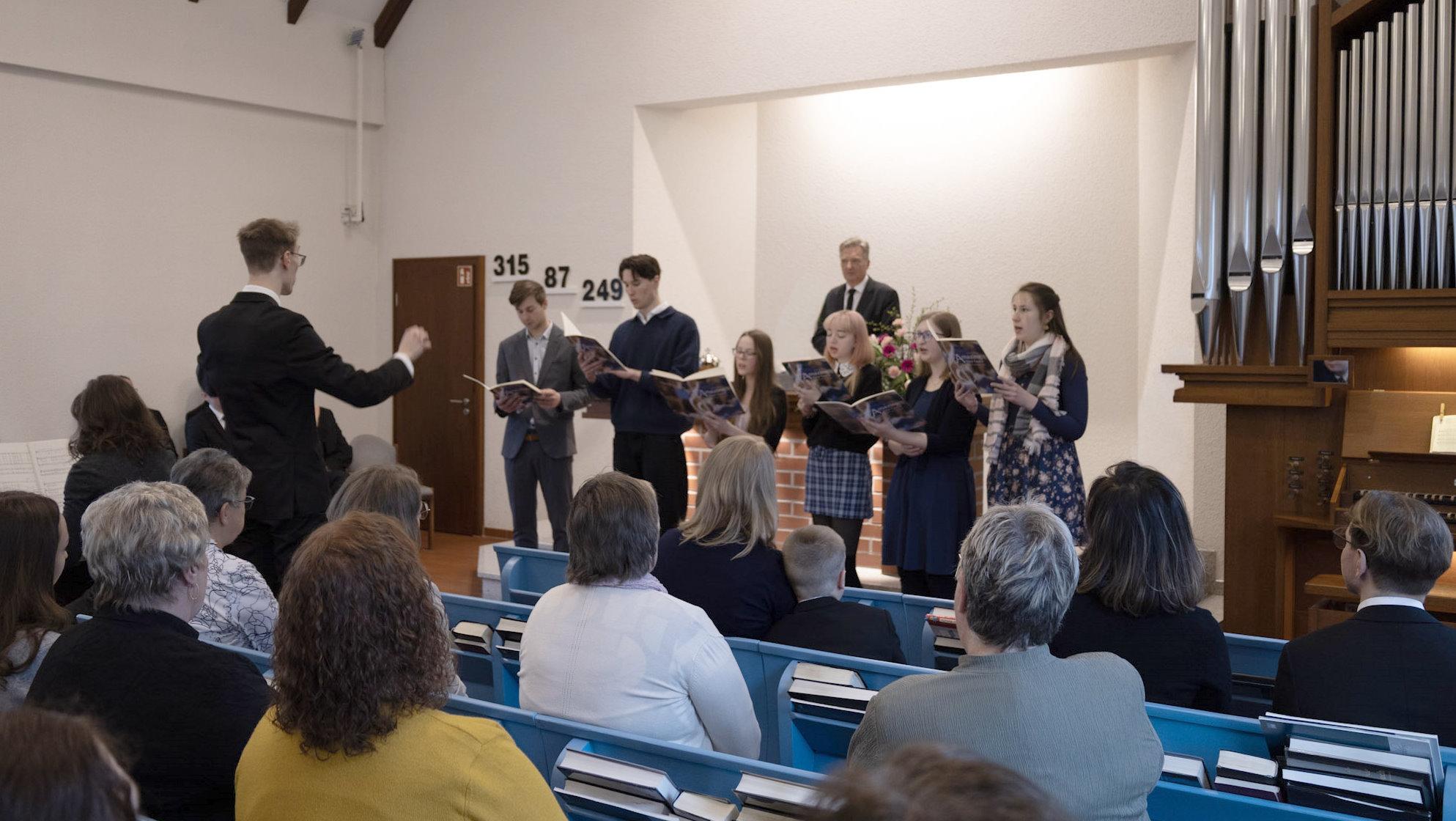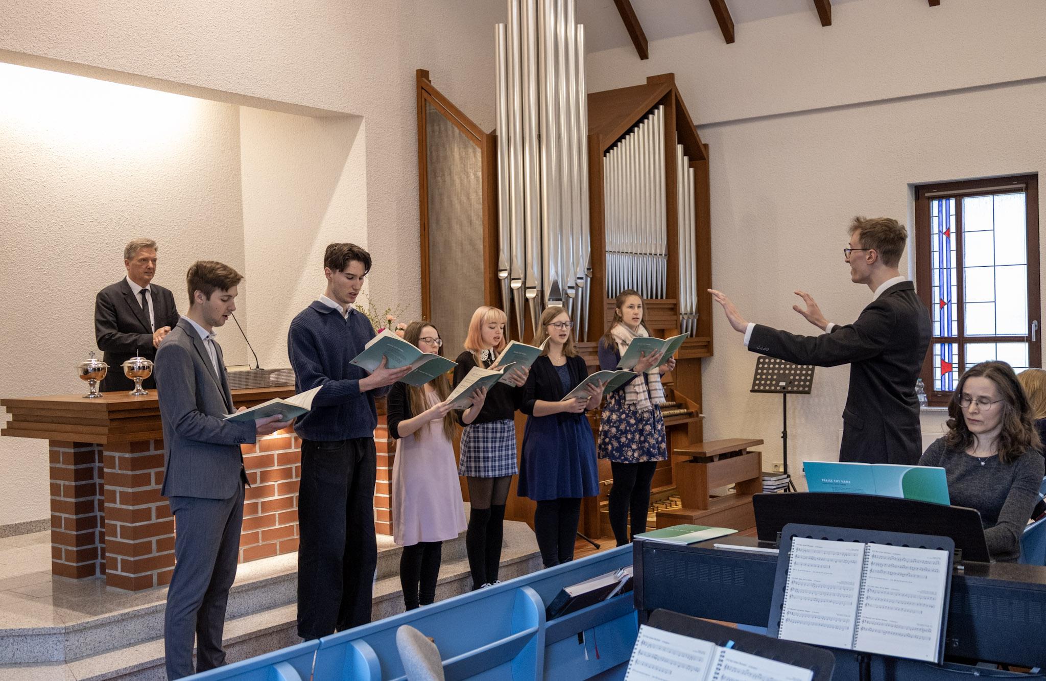 Mit diesem kraftvollen und Schwung gebenden Chorlied (CB 344), begann für unsere Konfirmandinnen Amelie Schmerler und Leni Löffler ihr ganz besonderer Gottesdienst. Sie durften am Sonntag, den 12.04.2026, ihre Konfirmation in unserer Gemeinde Olbernhau feiern. Dazu war auch die Gemeinde Marienberg mit eingeladen. Als Schale für dieses großartige Ereignis für die ganze Gemeinde diente ein Bibelvers aus Matthäus 10, 32: