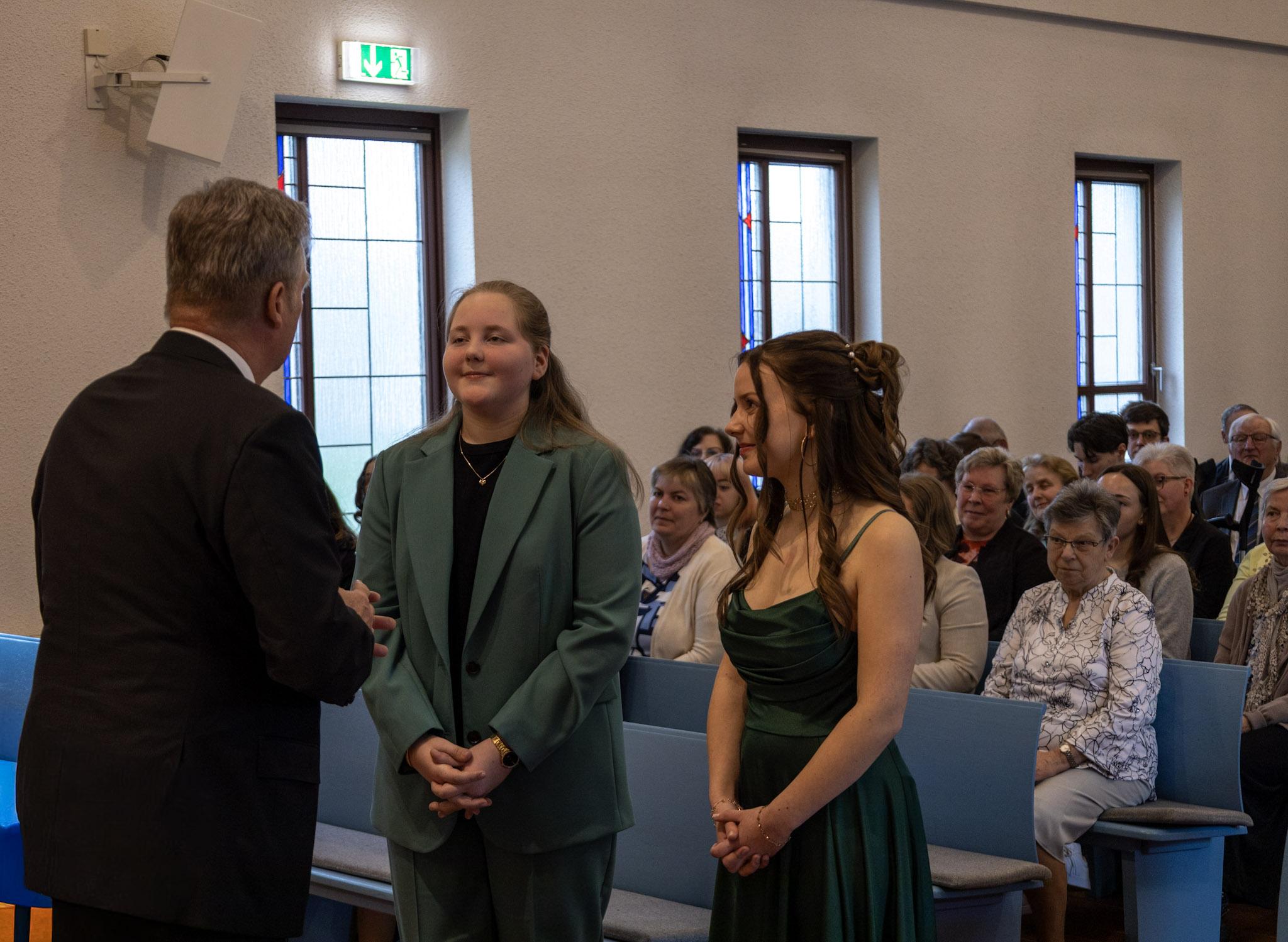 Bekennt mit der Hilfe Christi euer Christsein. Dazu seid ihr nicht allein. Ihr habt eure Eltern, eure Familie und uns als Gemeinde. Wo ihr zum Gottesdienst kommt und euch einbringen dürft. Es gibt vielfältige Möglichkeiten. Wir wollen euch beschützen, euch einen Rahmen geben, wo ihr euch wohlfühlt.